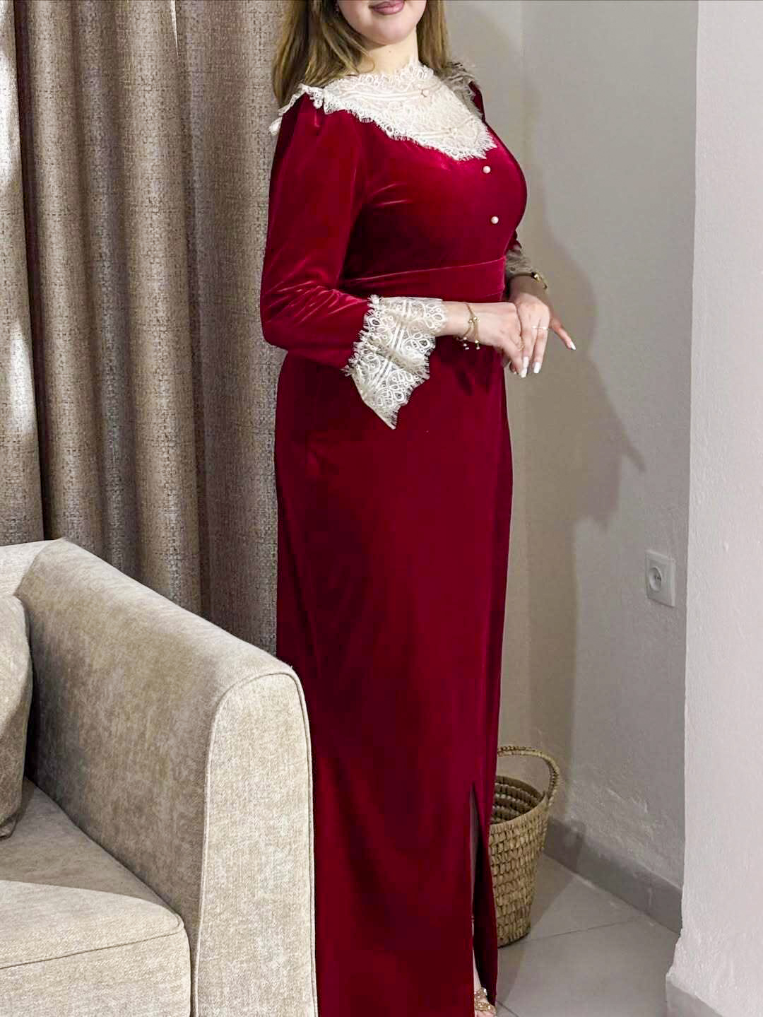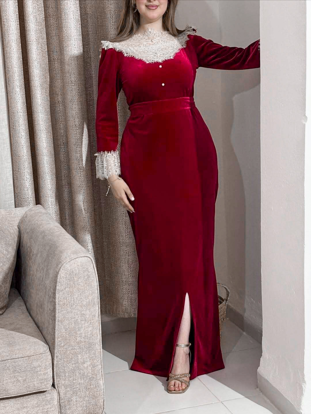 ▪️روب دانتيل ناعمة وأكمام بتفاصيل راقية تعطي إطلالة فخمة.